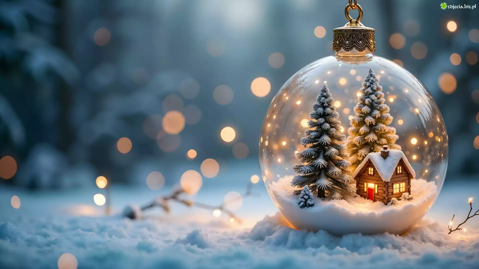 Zdjęcie Boże Narodzenie, Bombka, Śnieg, Choinki, Domek, AI