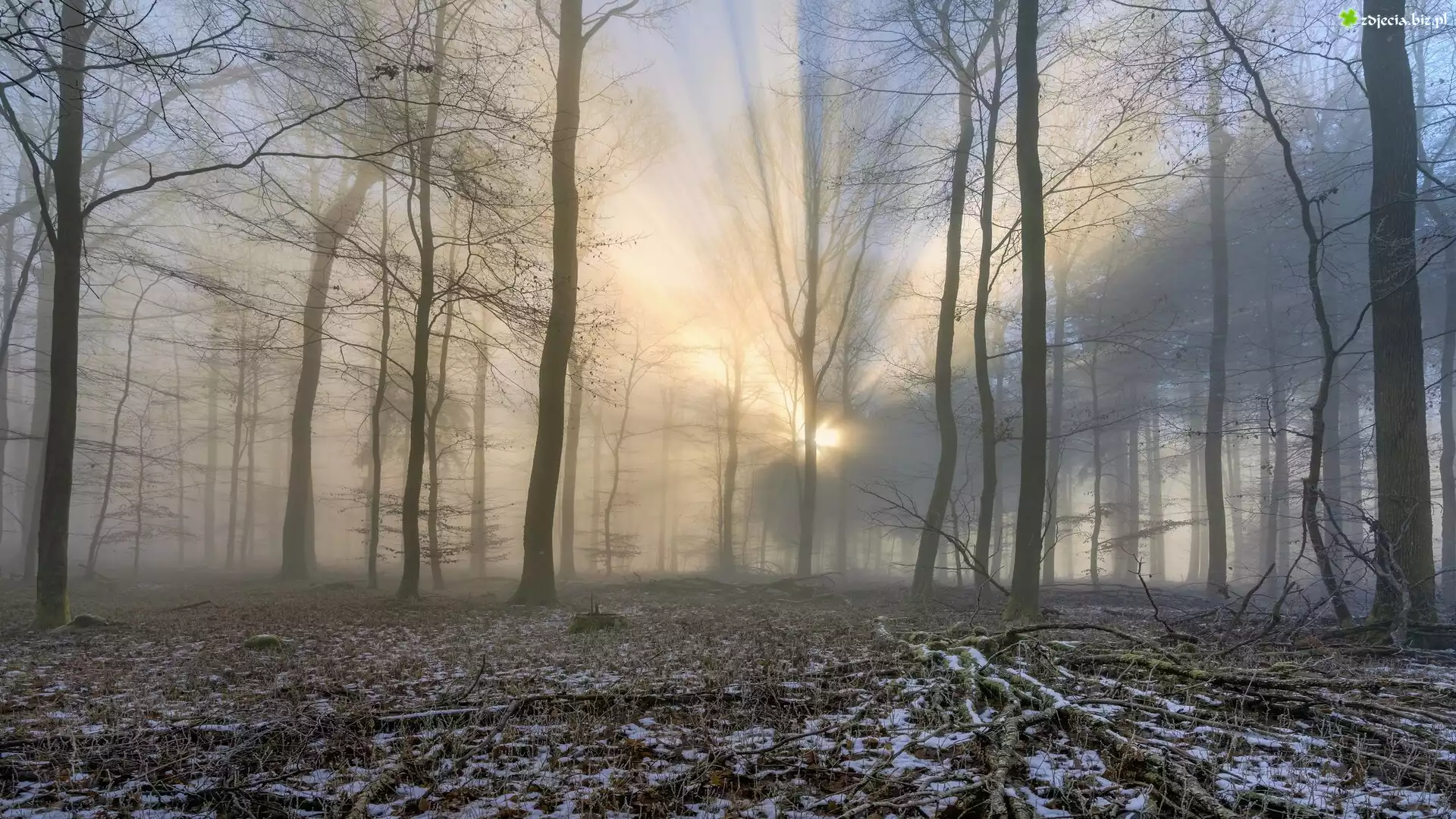 Zdjęcie Las, Śnieg, Drzewa, Przebijające światło