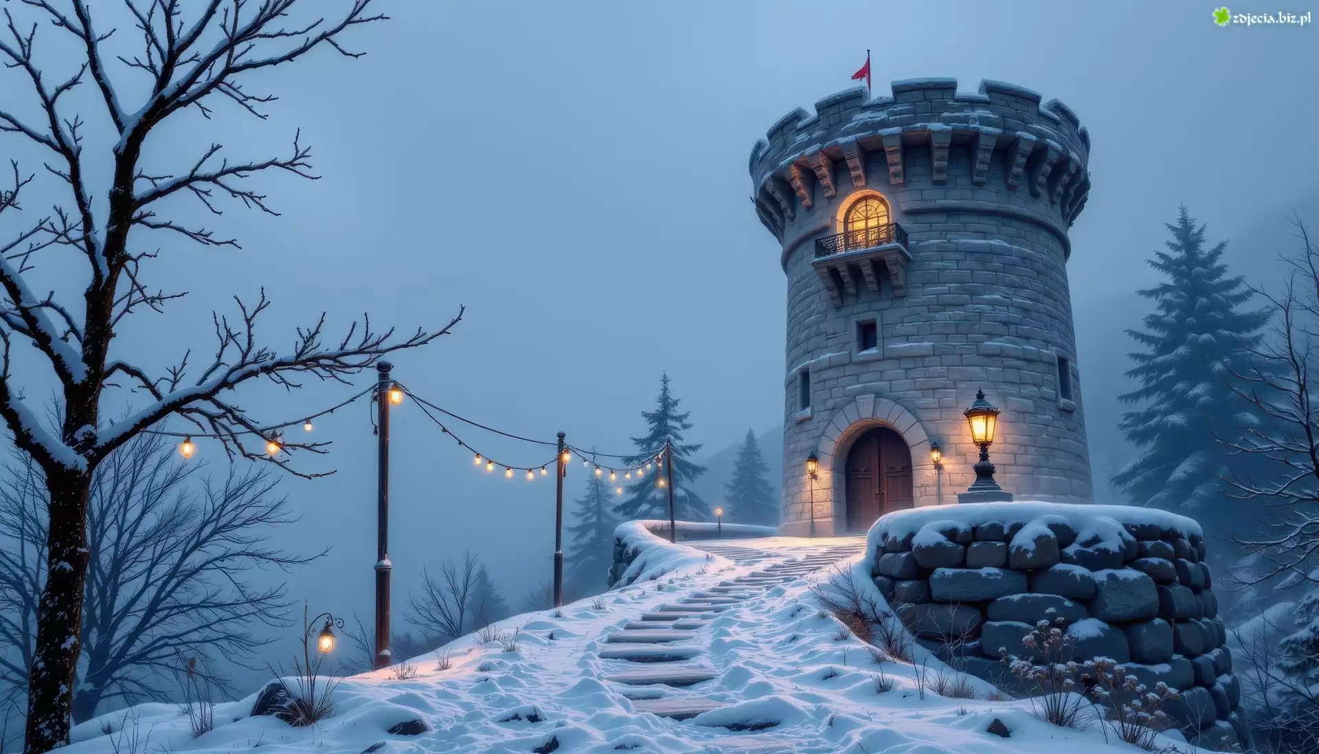 Zdjęcie Zima, Wieża, Schody, Śnieg