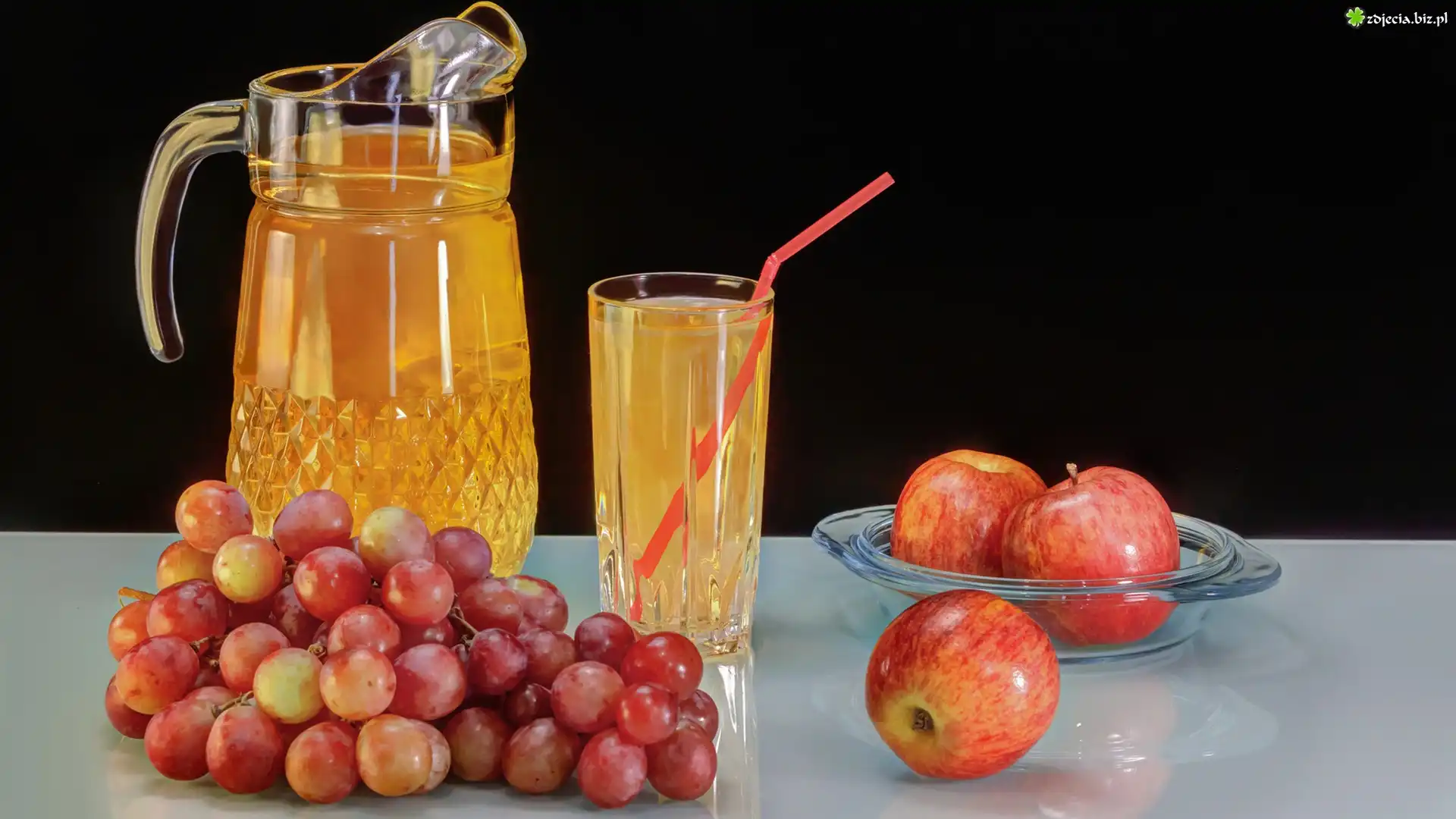 Zdjęcie Sok, Winogrona, Jabłka, Szklanka, Dzbanek