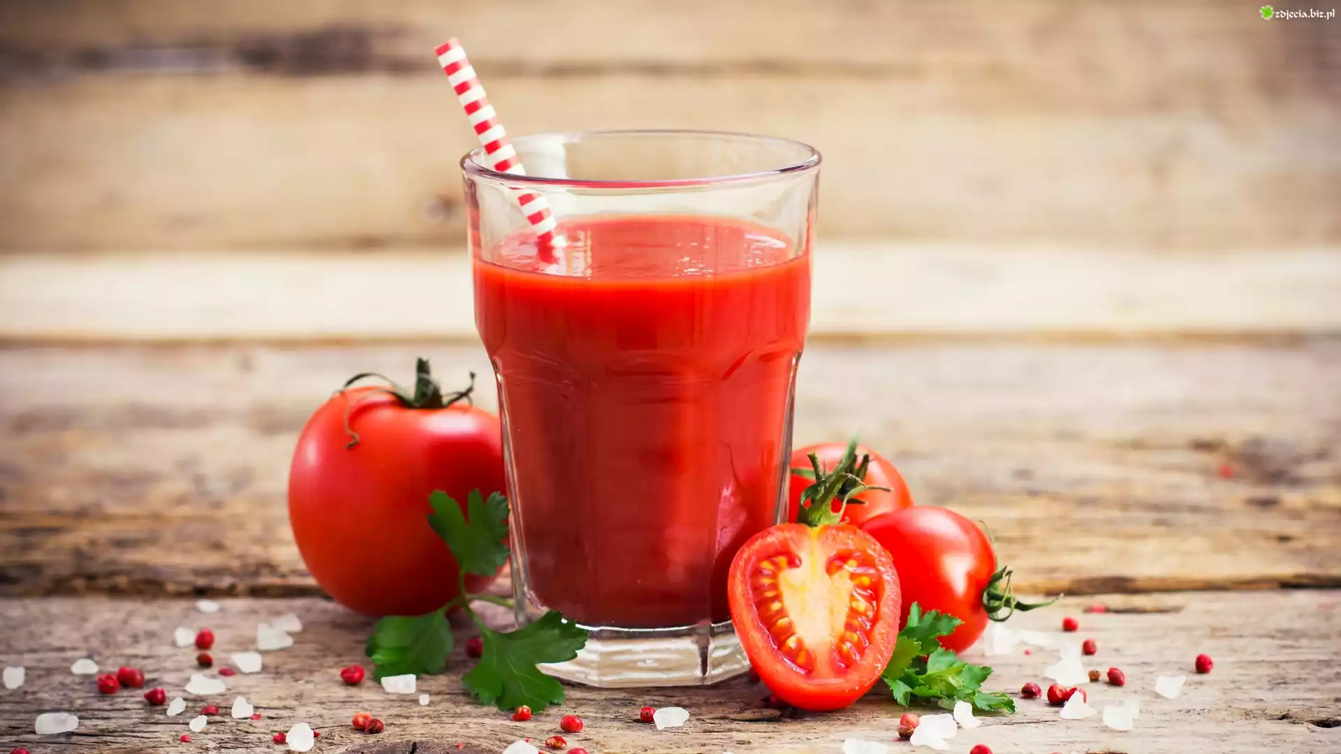 Zdjęcie Sok, Pomidory, Szklanka, Słomka