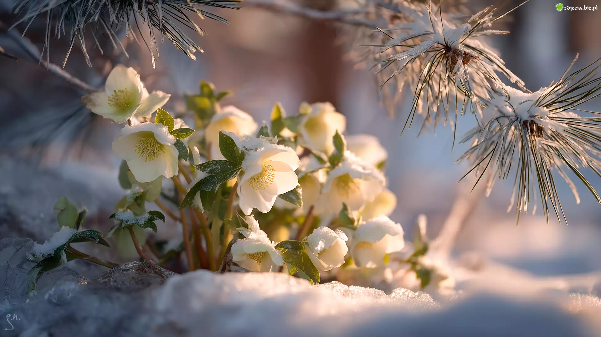 Zdjęcie Białe, Ciemierniki, Śnieg, Sosna, Grafika AI
