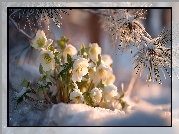 Zdjęcie, Białe, Ciemierniki, Śnieg, Sosna, Grafika AI