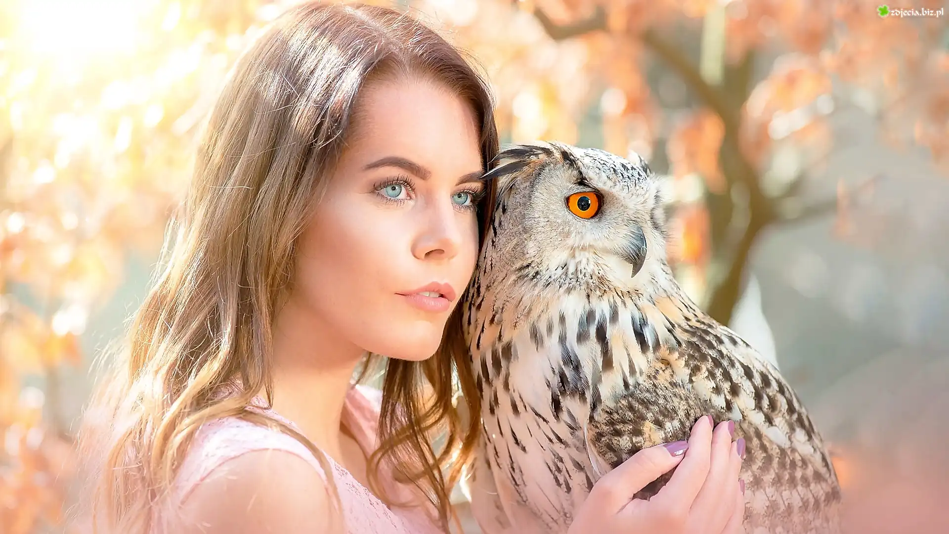Zdjęcie, Kobieta, Sowa, Puchacz