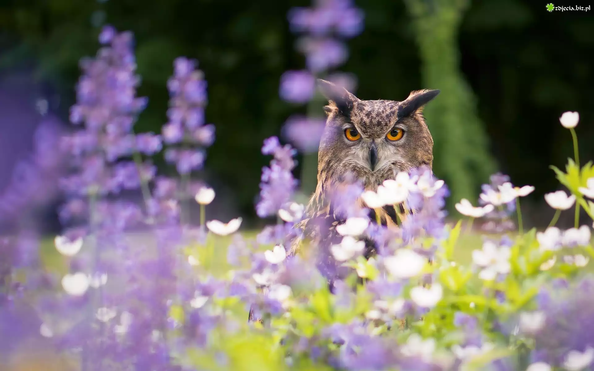 Zdjęcie, Puchacz, Sowa, Kwiaty