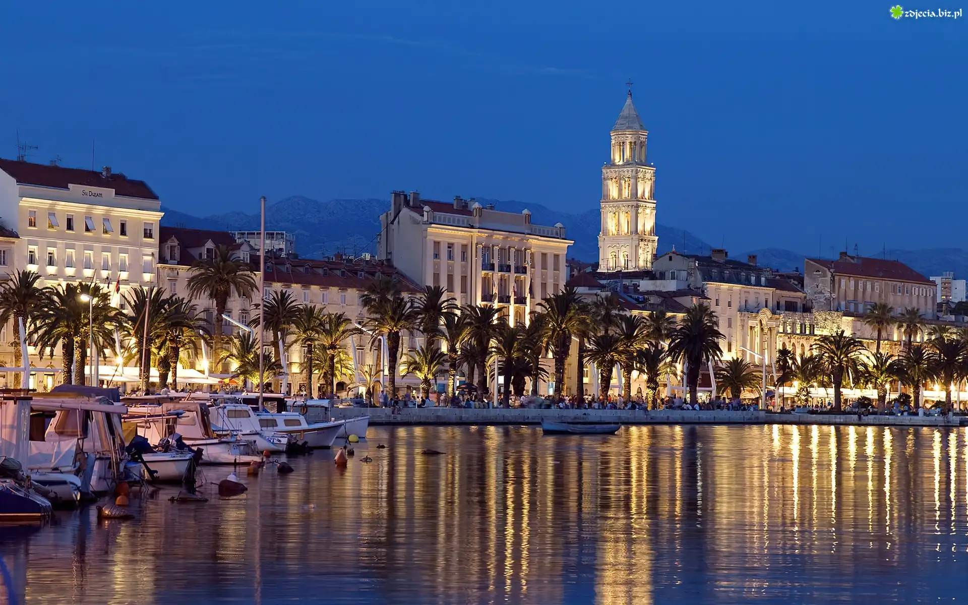 Zdjęcie Split, Panorama, Miasta, Wieczór, Nabrzeże, Jachty