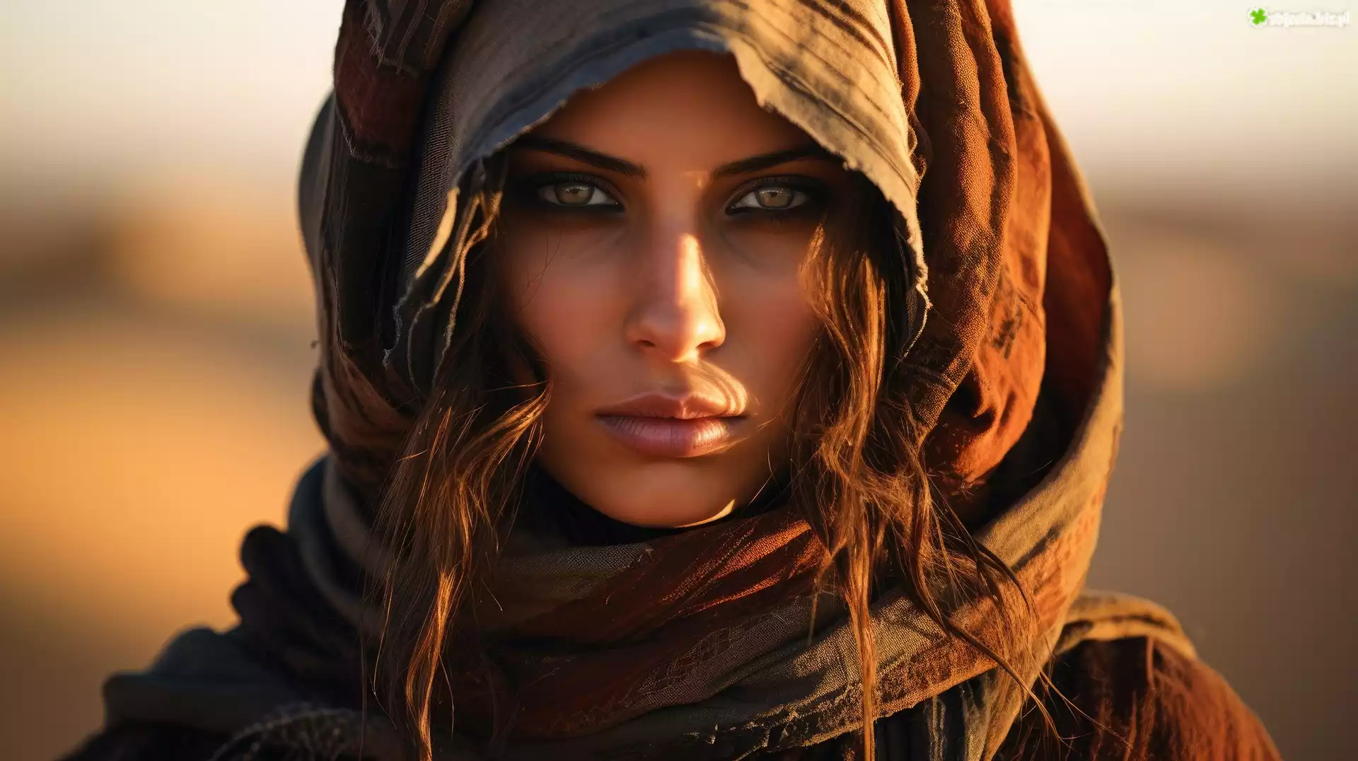 Zdjęcie Kobieta, Twarz, Szal, Spojrzenie, Grafika AI