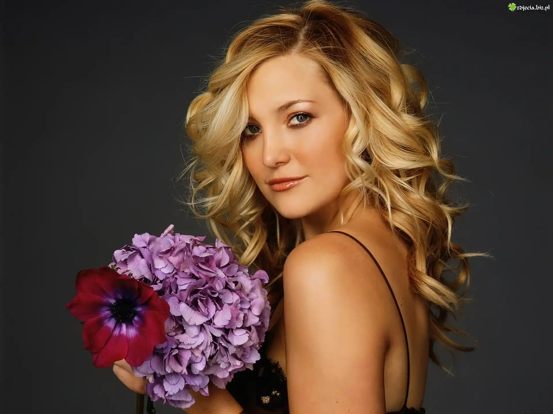 Zdjęcie Blondynka, Spojrzenie, Kwiaty, Kate Hudson