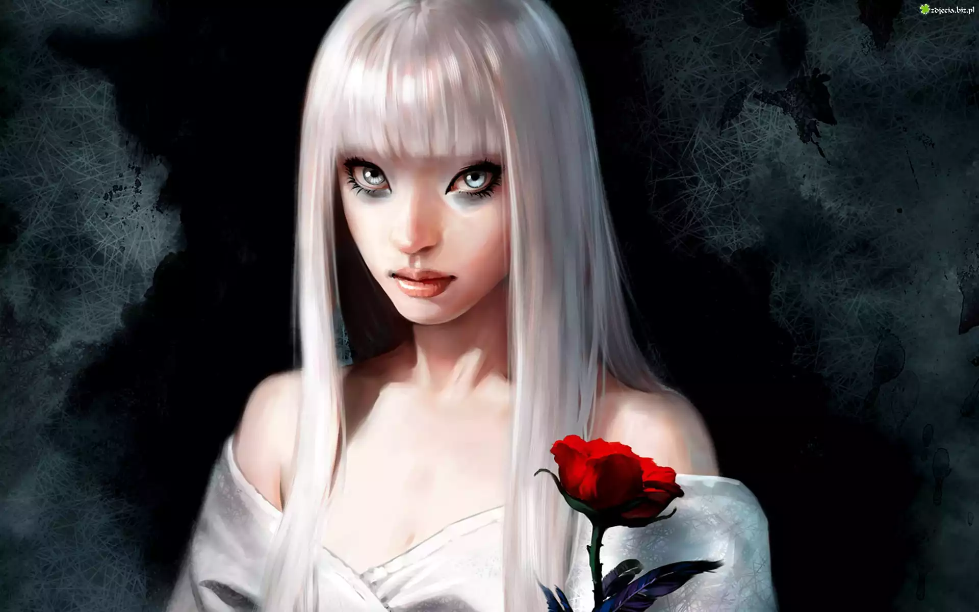 Zdjęcie Dziewczyna, Spojrzenie, Róża
