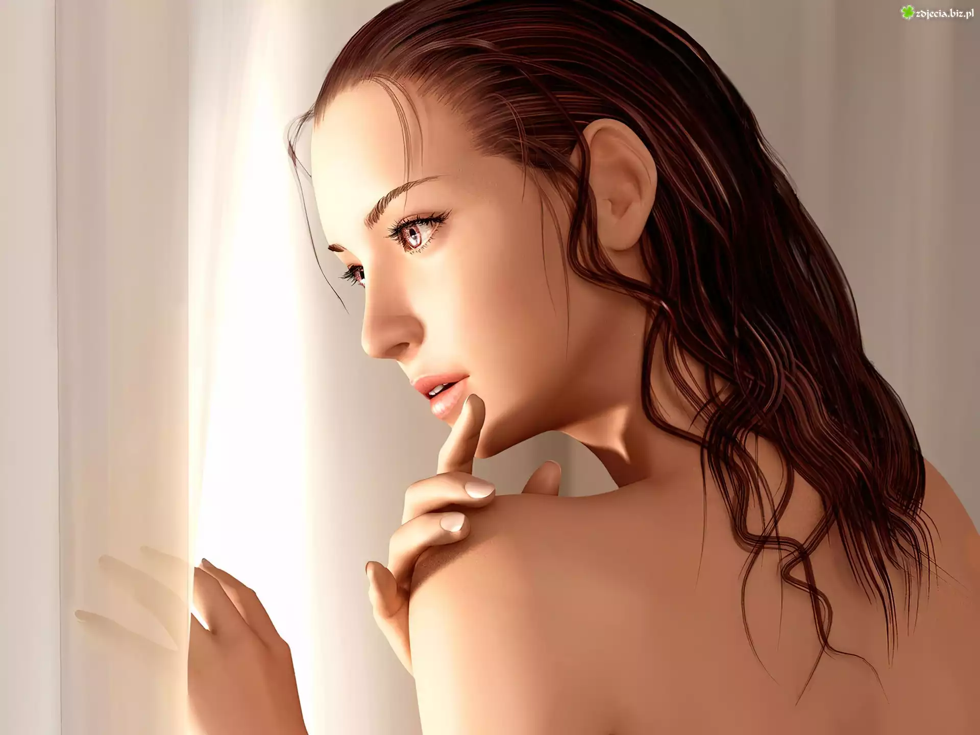 Zdjęcie Kobieta, Spojrzenie, Dłonie