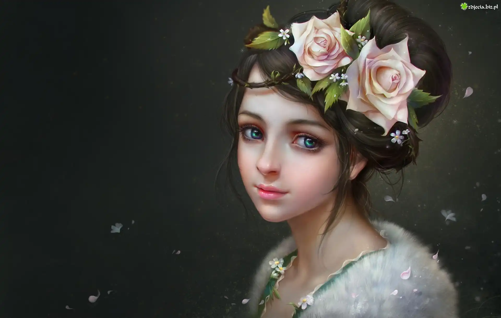 Zdjęcie Kobieta, Spojrzenie, Róże