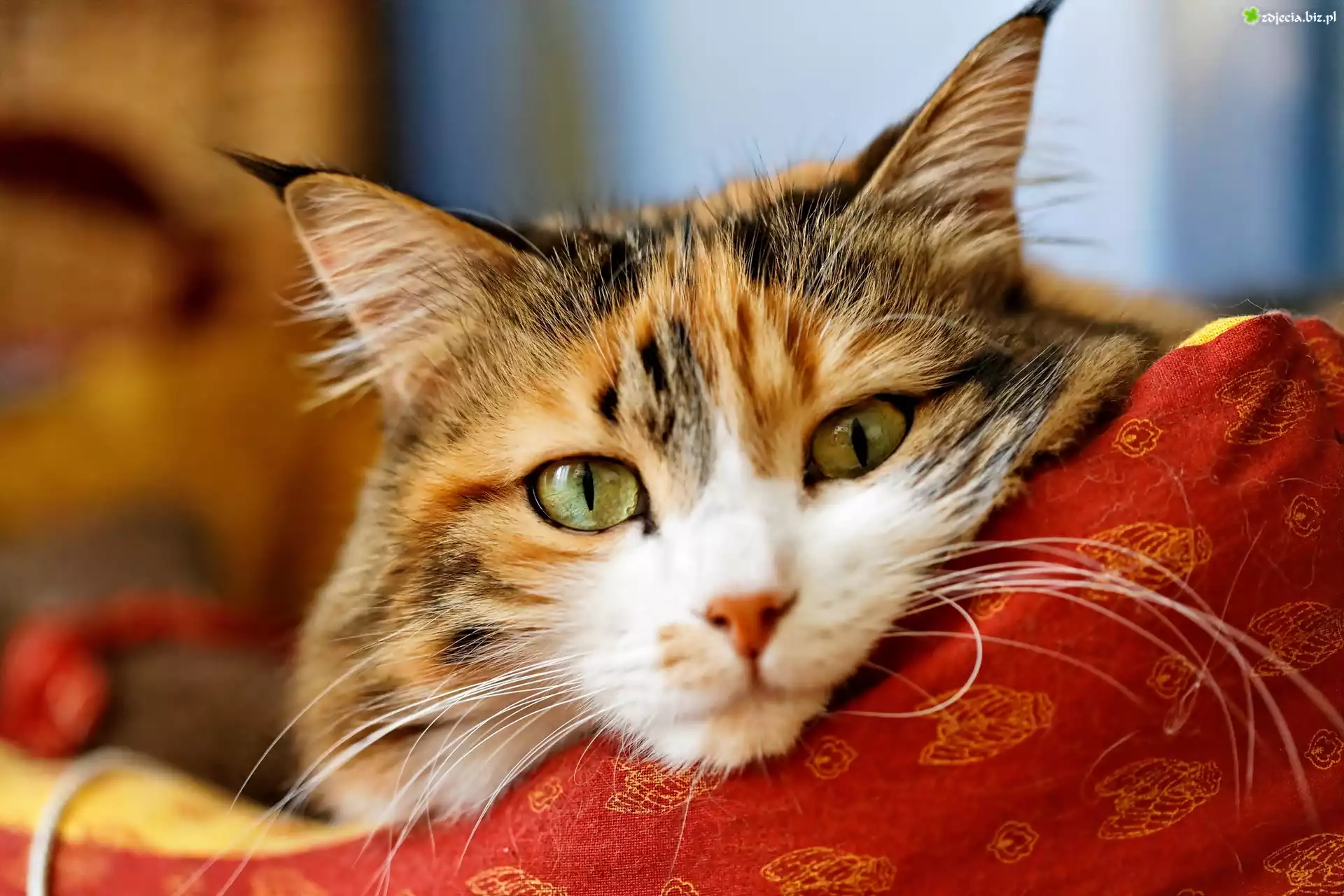 Zdjęcie Kot, Spojrzenie, Poduszka