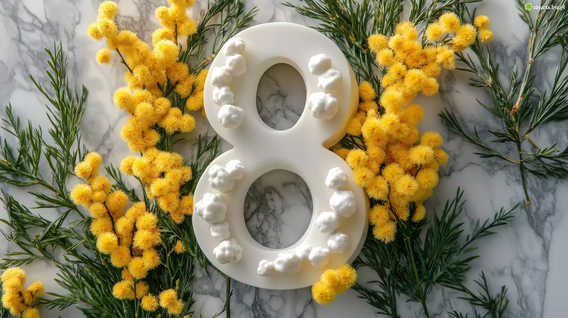 Zdjęcie, Dzień Kobiet, Cyfra, Osiem, Kwiaty, Żółte, Akacja srebrzysta