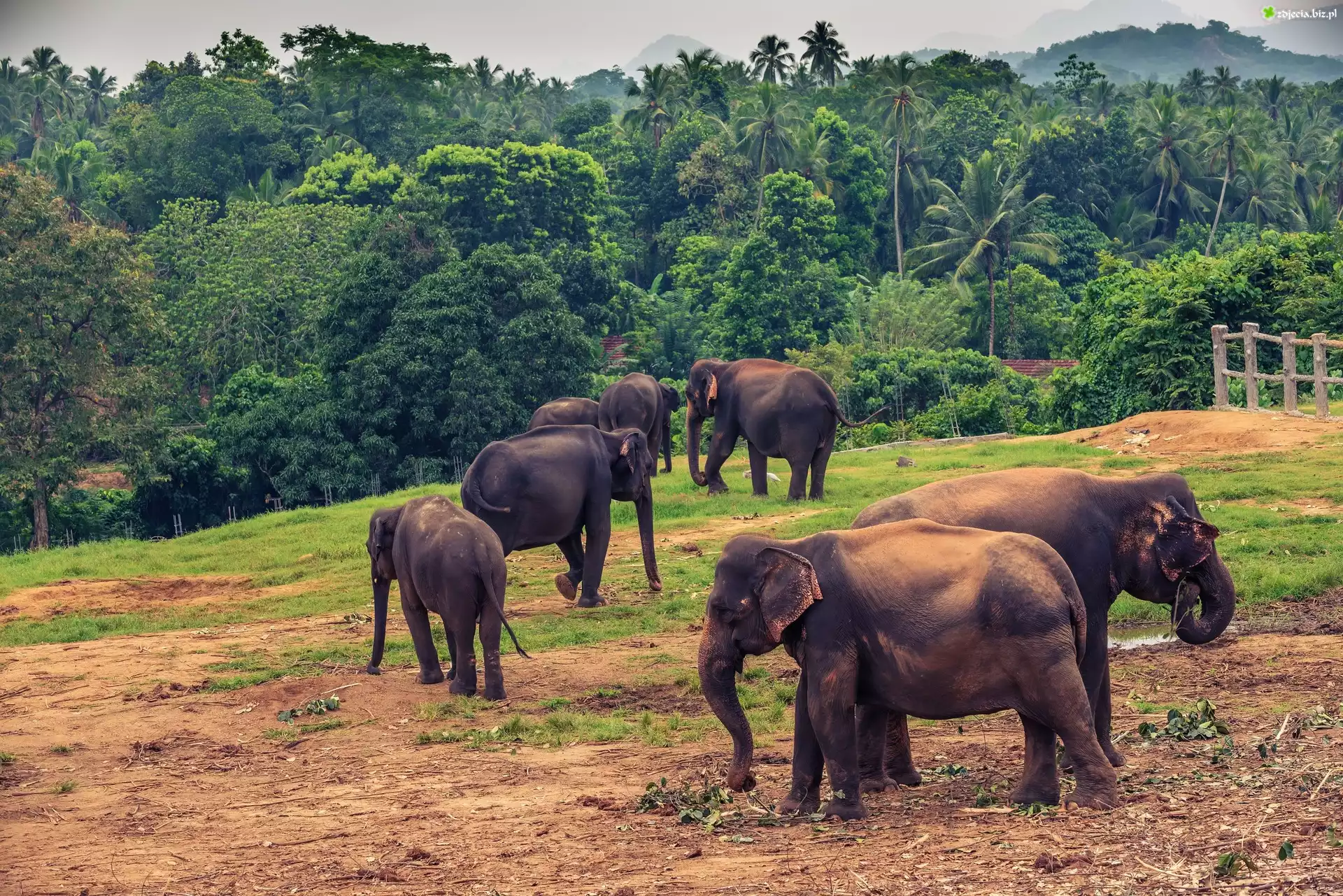 Zdjęcie Sri Lanka, Słonie, Pinnawala, Drzewa, Palmy