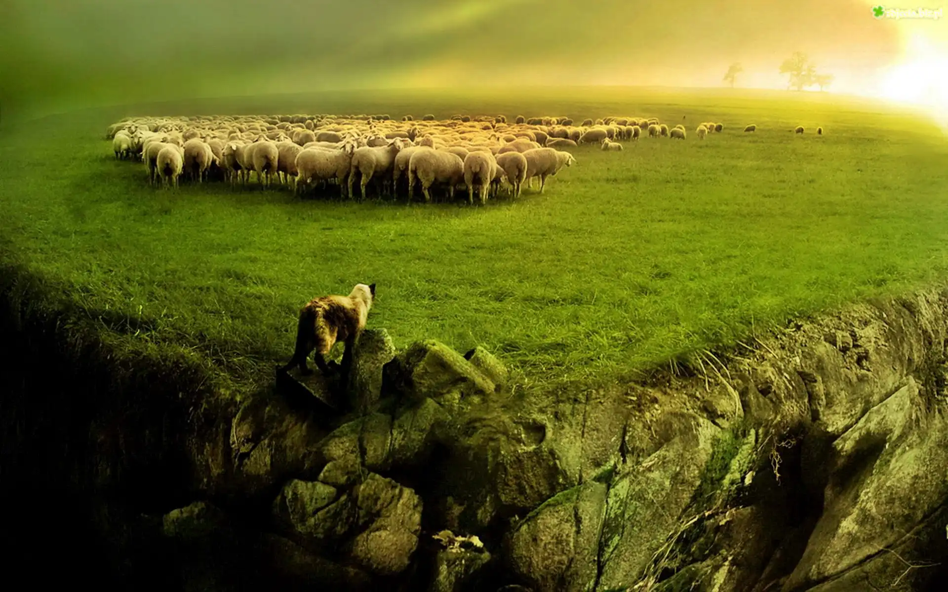 Zdjęcie Owce, Stado, Wilk