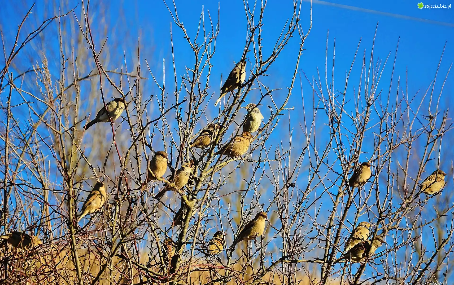 Zdjęcie Wróble, Stado, Gałęzie