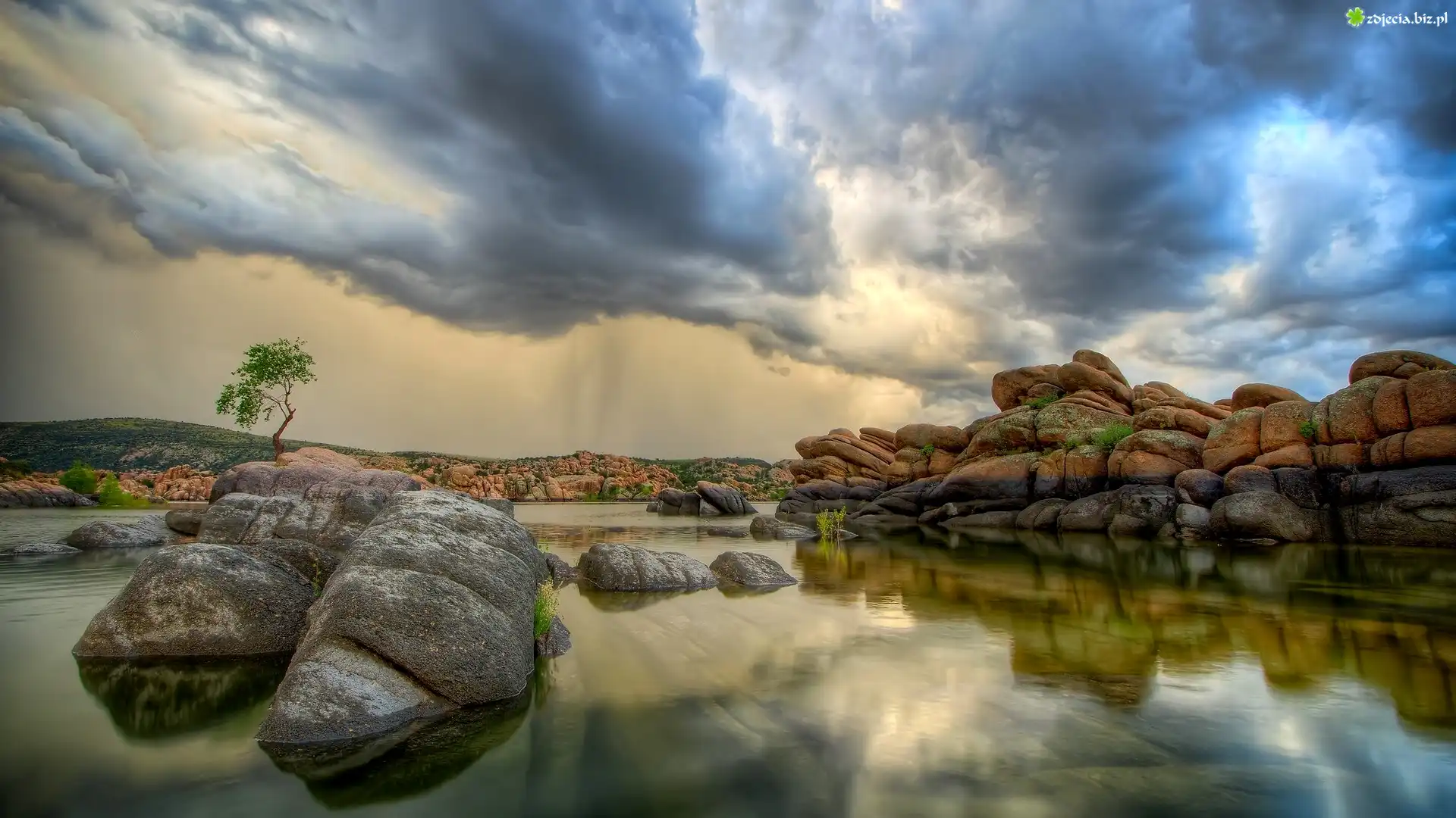 Zdjęcie Stany Zjednoczone, Stan Arizona, Prescott, Jezioro Watson Lake, Chmury, Brzeg, Kamienie