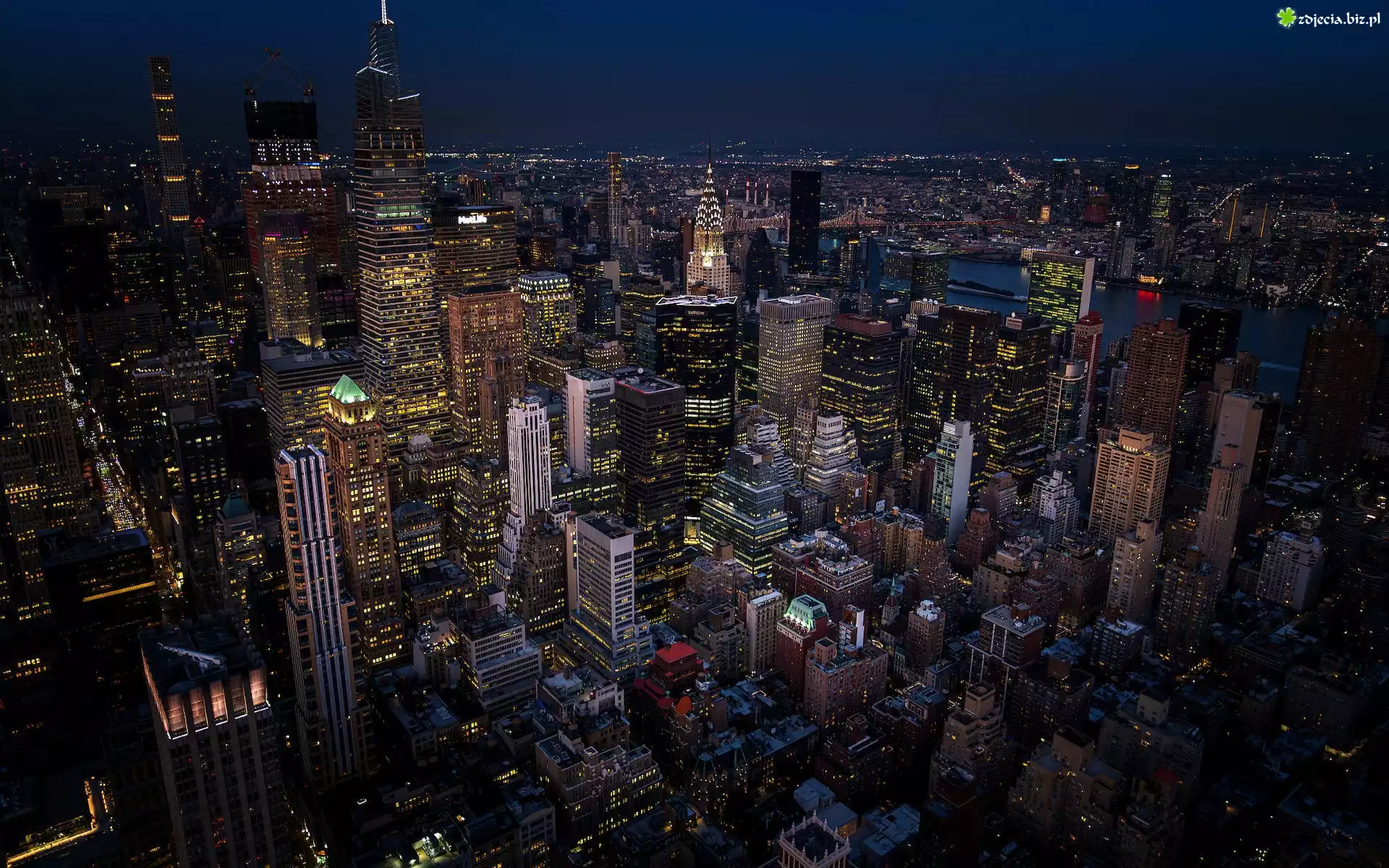 Zdjęcie Stany Zjednoczone, Nowy Jork, Manhattan, Wieżowce, Noc, Z lotu ptaka
