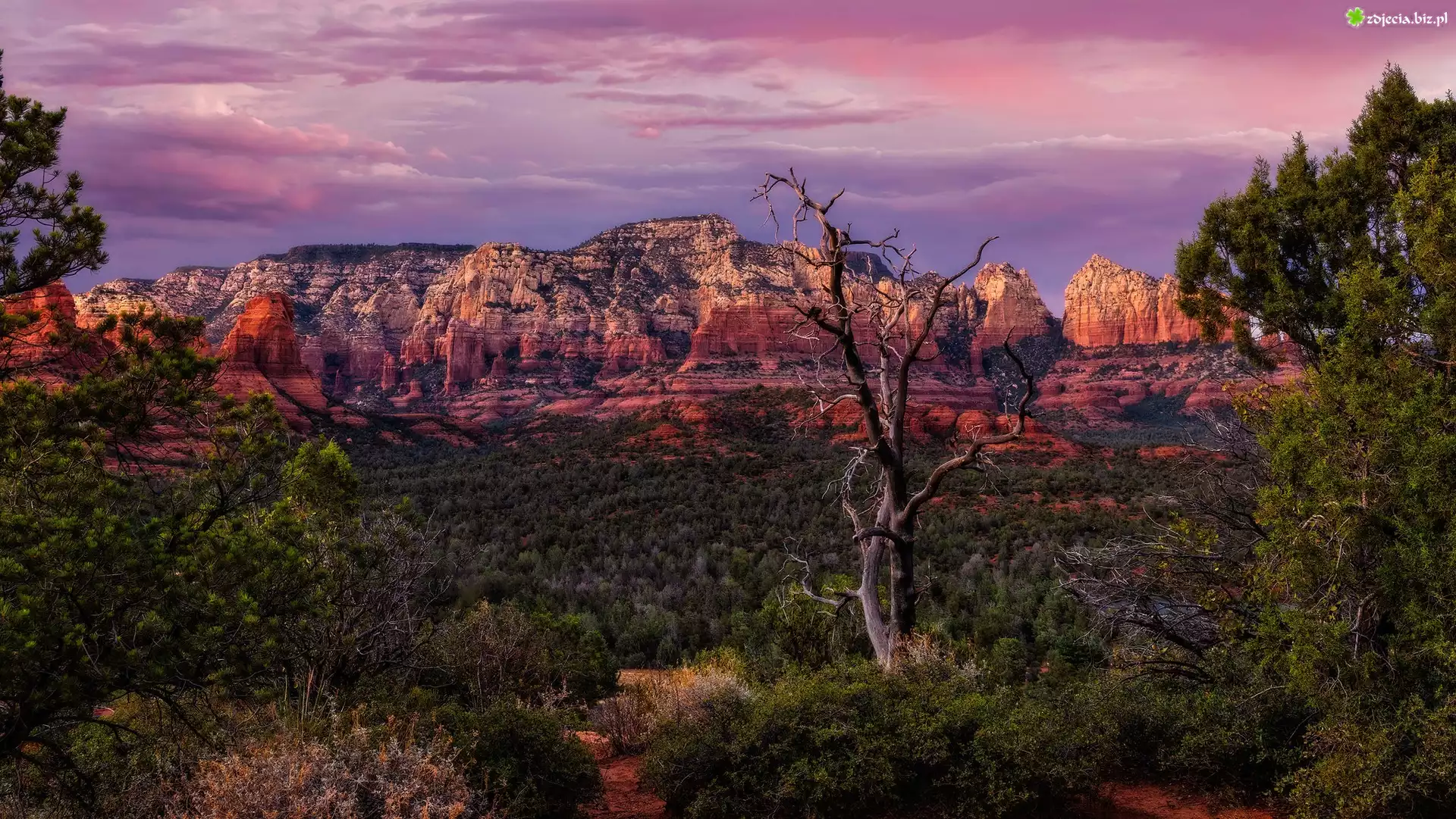 Zdjęcie Stany Zjednoczone, Arizona, Sedona, Góry, Wilson Mountains, Skały, Drzewa