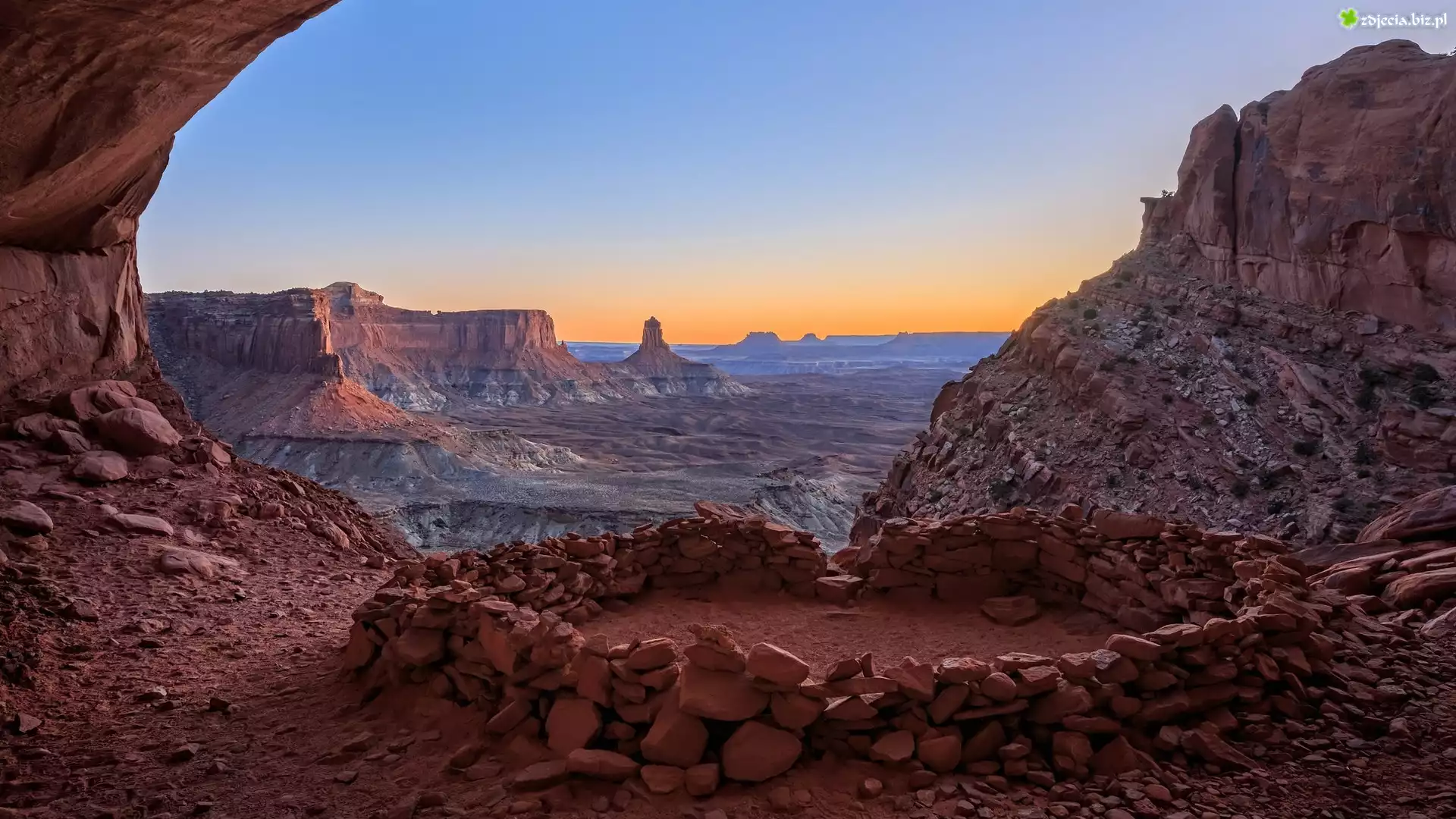 Zdjęcie Stany Zjednoczone, Stan Utah, Park Narodowy Canyonlands, Krąg kamienny, False Kiva, Kanion, Skały, Niebo, Chmury |