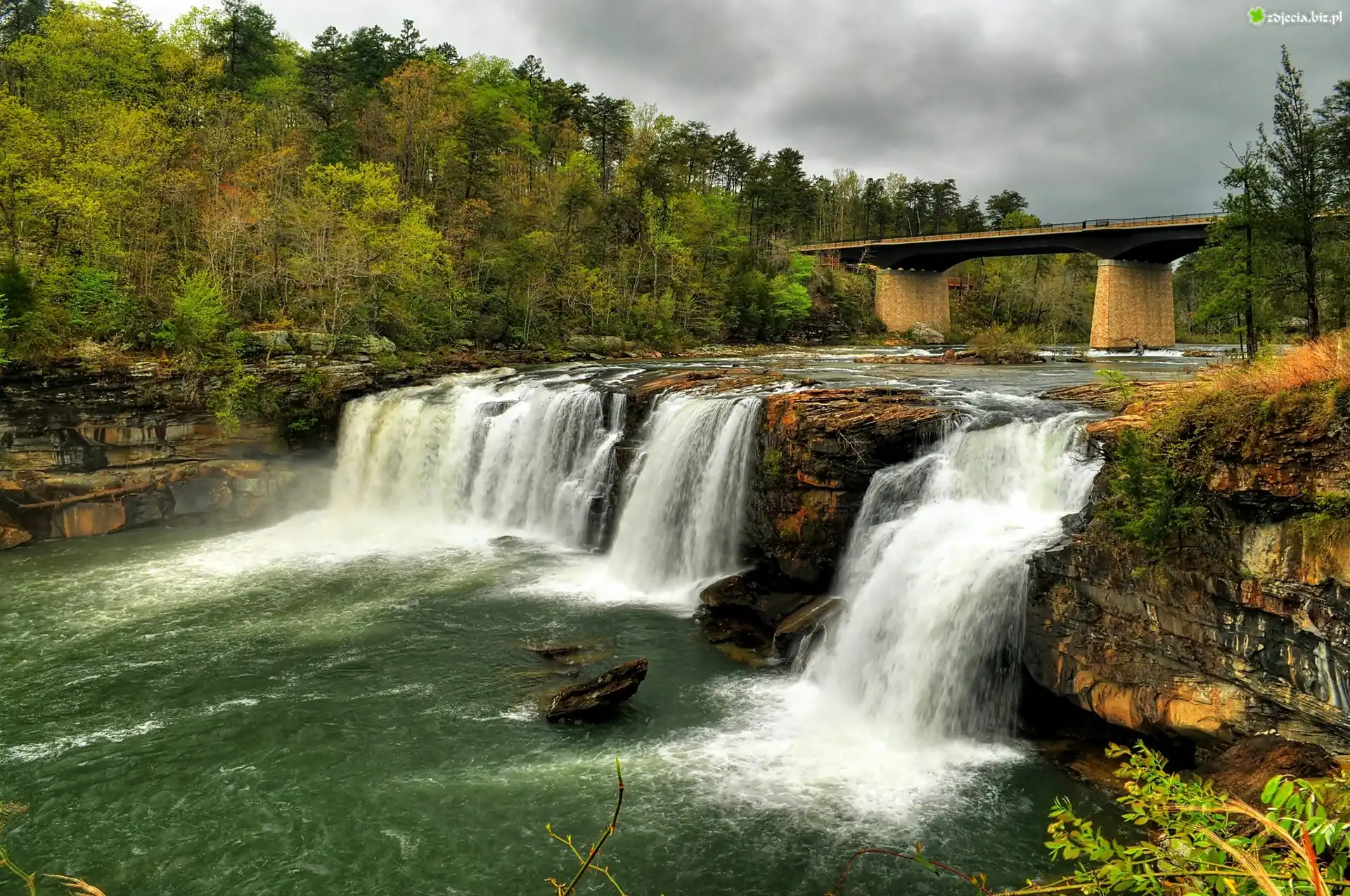 Zdjęcie Stany Zjednoczone, Stan Alabama, Little River Canyon National Preserve, Most, Wodospad Little River Falls, Rzeka, Las |