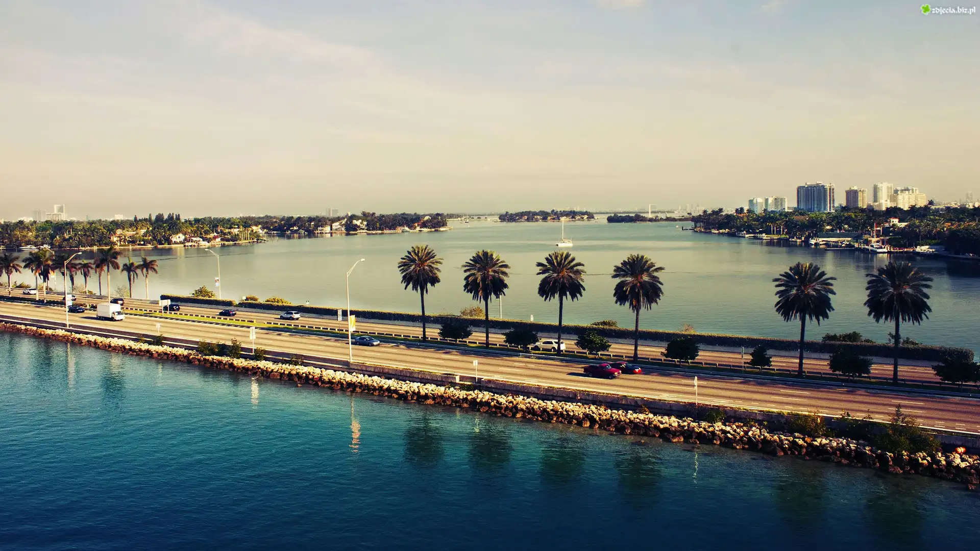 Zdjęcie, Stany Zjednoczone, Miami, Droga, Samochody, Palmy