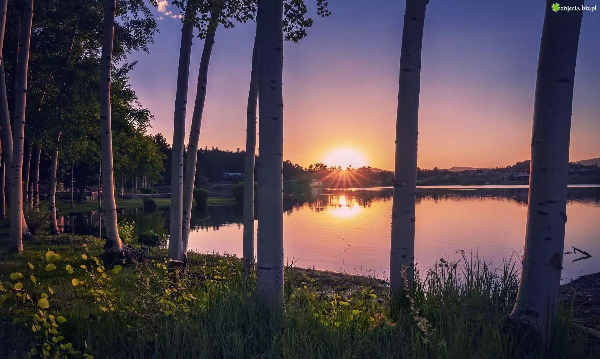Zdjęcie Stany Zjednoczone, Kolorado, Red Feather Lakes, Drzewa, Zachód słońca, Jezioro