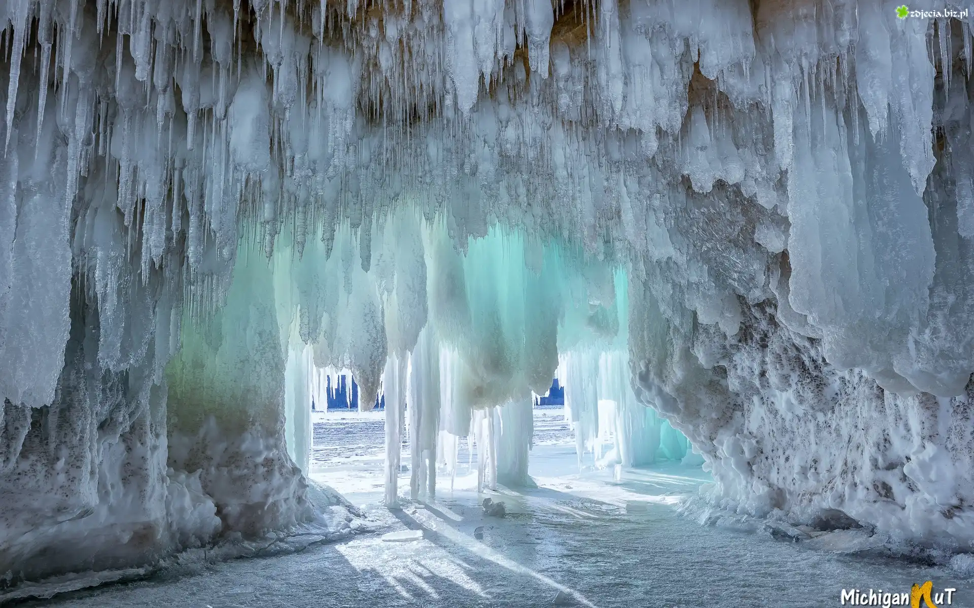 Zdjęcie Stany Zjednoczone, Michigan, Munising, Grand Island, Jaskinia, Lodowa, Sople, Zima