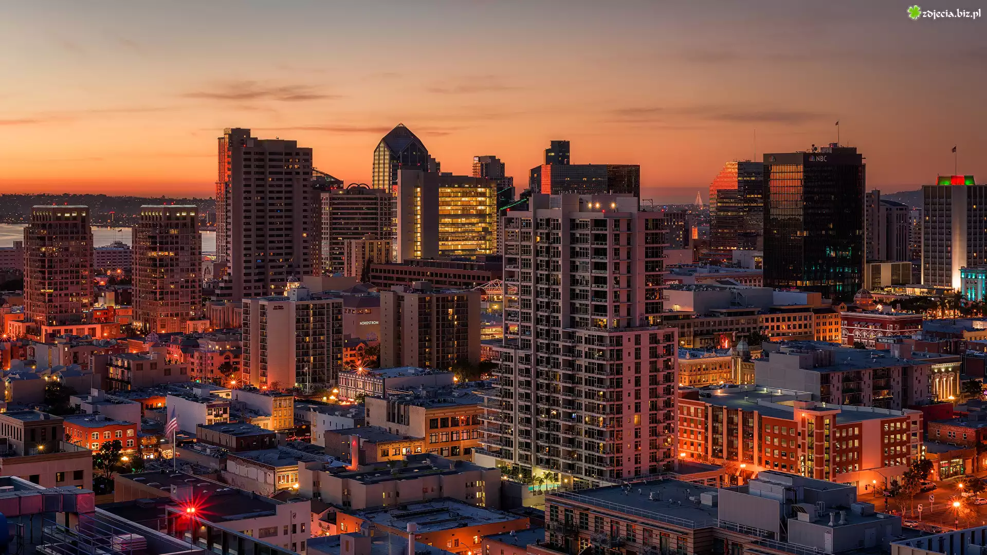 Zdjęcie Stany Zjednoczone, Stan Kalifornia, Miasto, San Diego, Budynki, Światła, Wieczór