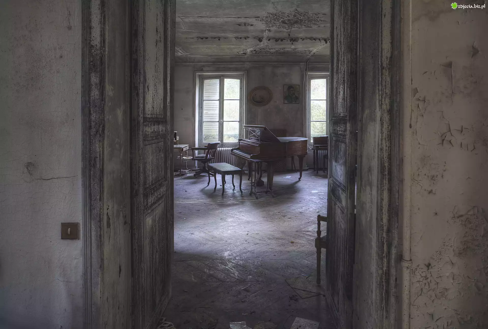 Zdjęcie Zaniedbany, Zniszczony, Pokój, Fortepian, Krzesło