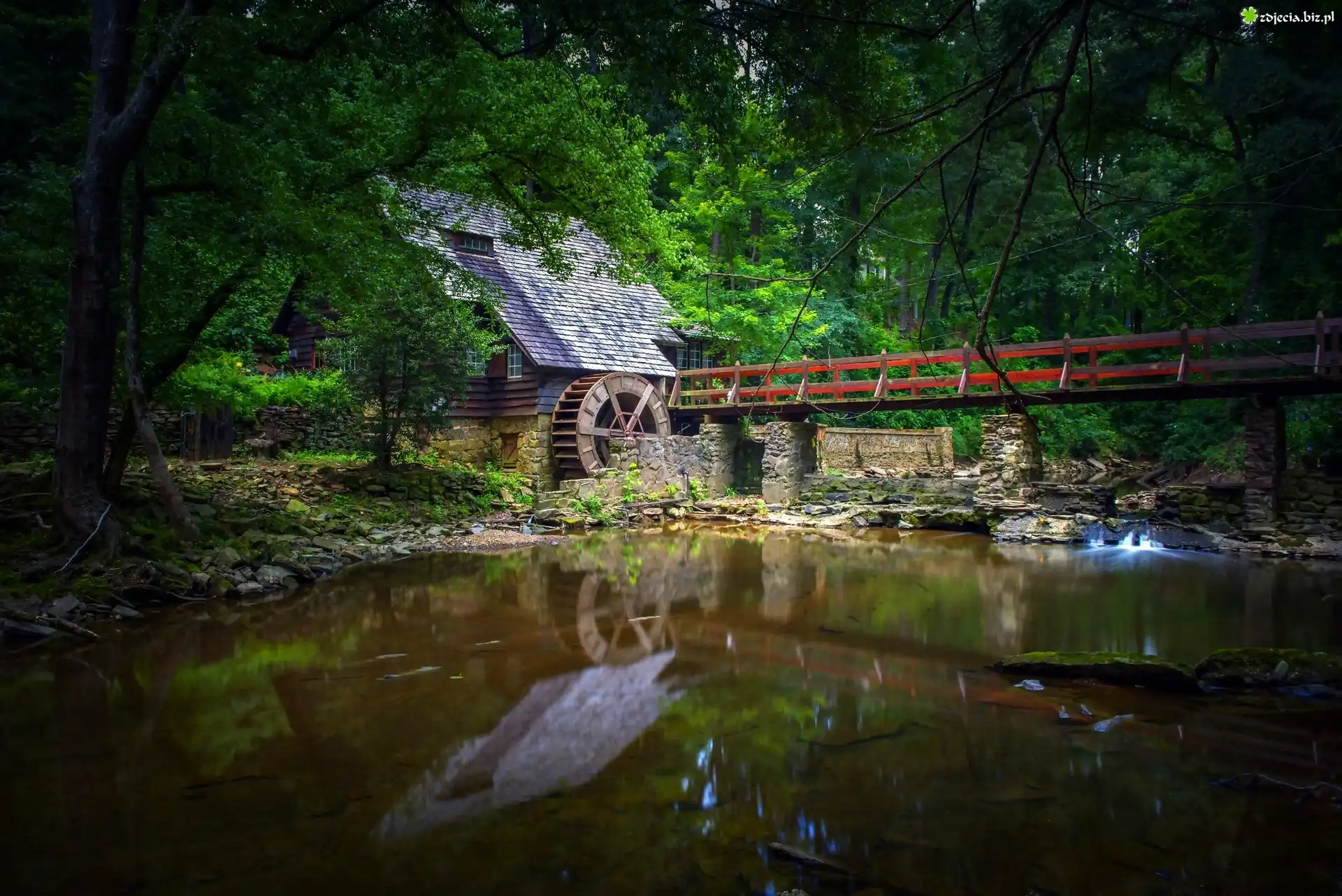 Zdjęcie Stary, Młyn, Most, Las, Rzeka