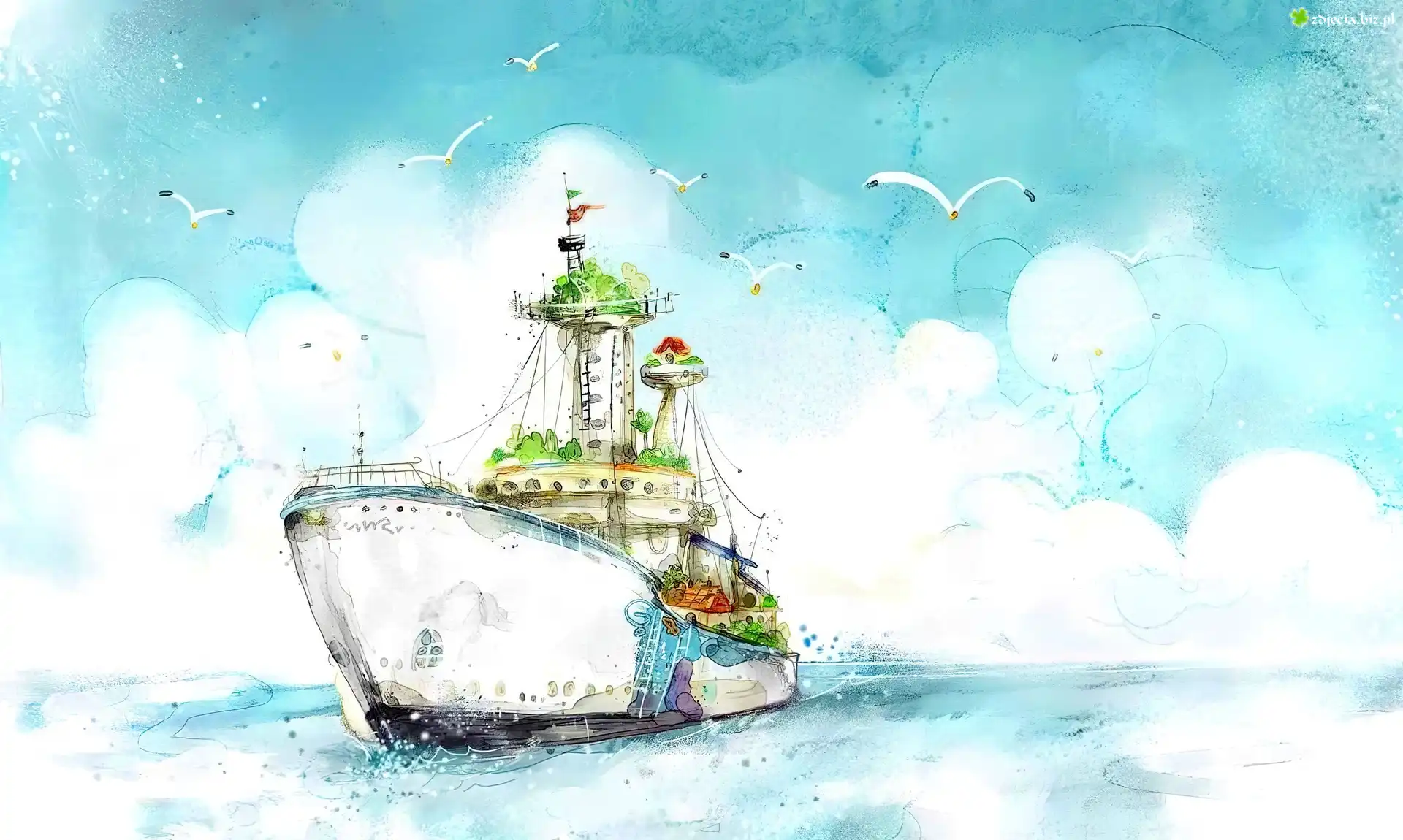 Zdjęcie Morze, Statek, Mewy