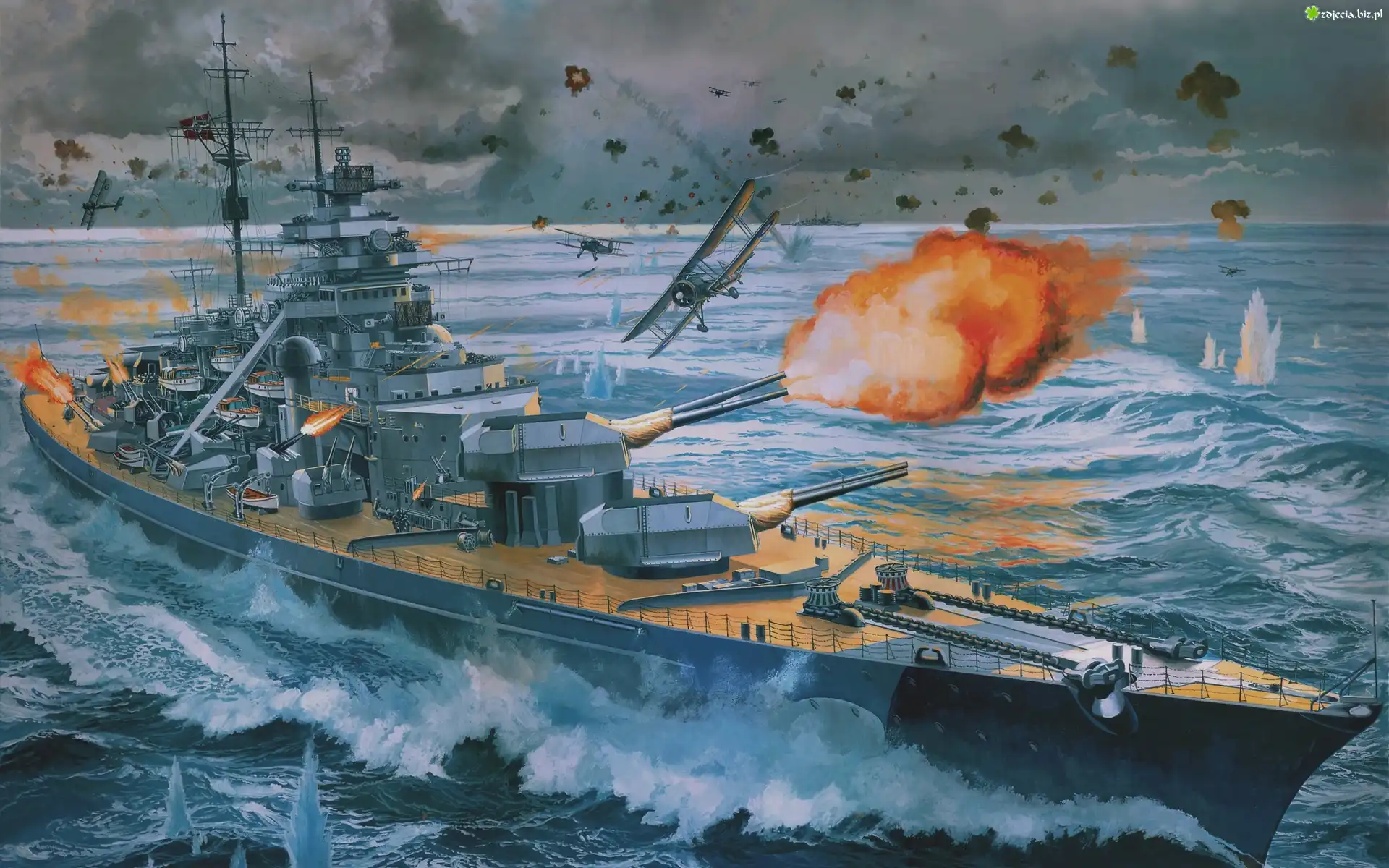 Zdjęcie Statek, Wojskowy, Samoloty, Morze, Ogień