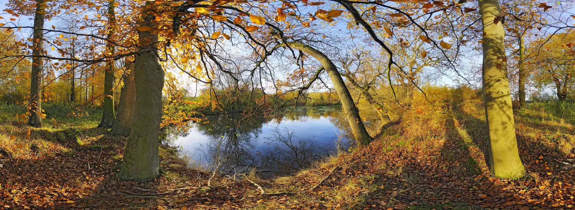 Zdjęcie, Jesień, Staw, Drzewa
