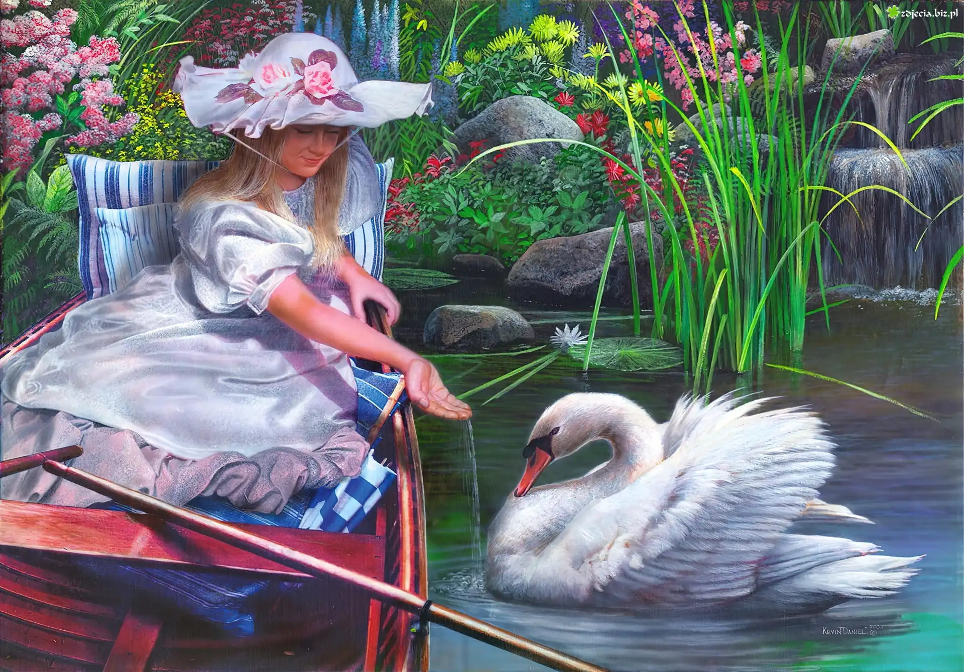 Zdjęcie Staw, Dziewczynka, Łódka, Łabędź