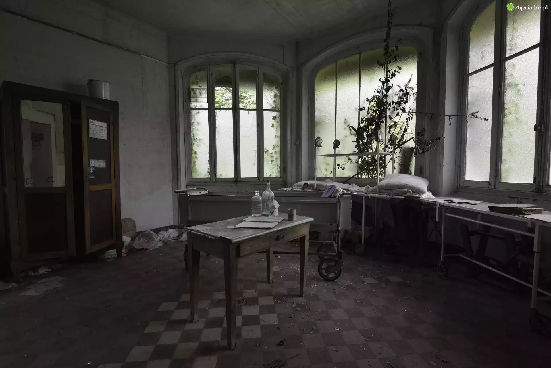 Zdjęcie Zaniedbane, Pomieszczenie, Stół, Okna