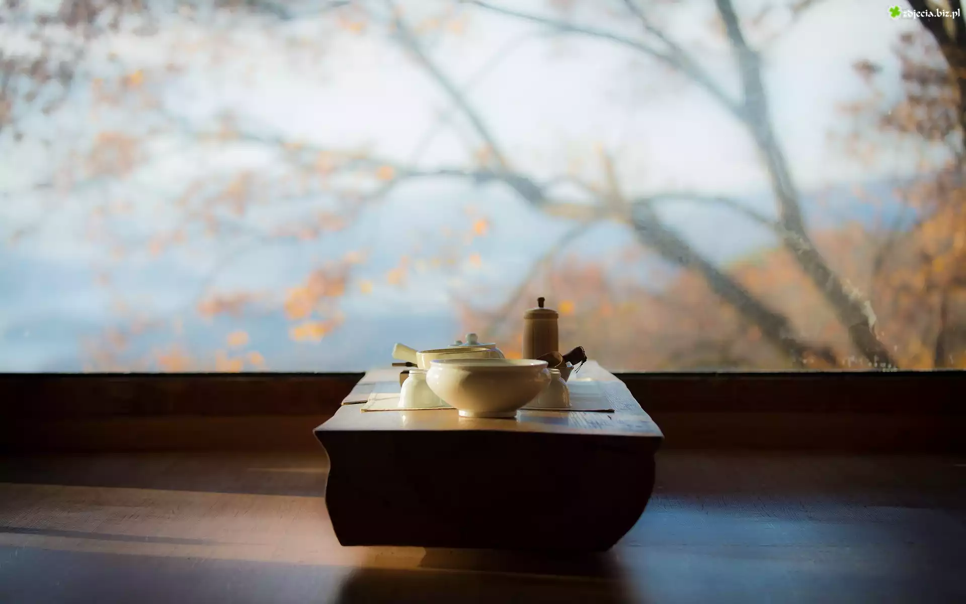 Zdjęcie Stół, Naczynia, Okno, Widok