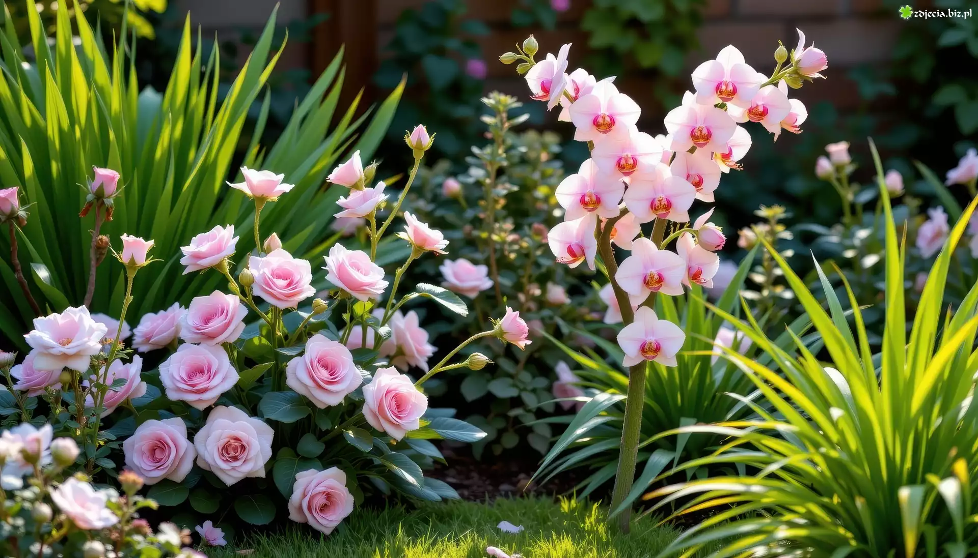 Zdjęcie Ogród, Kwiaty, Róże, Storczyki
