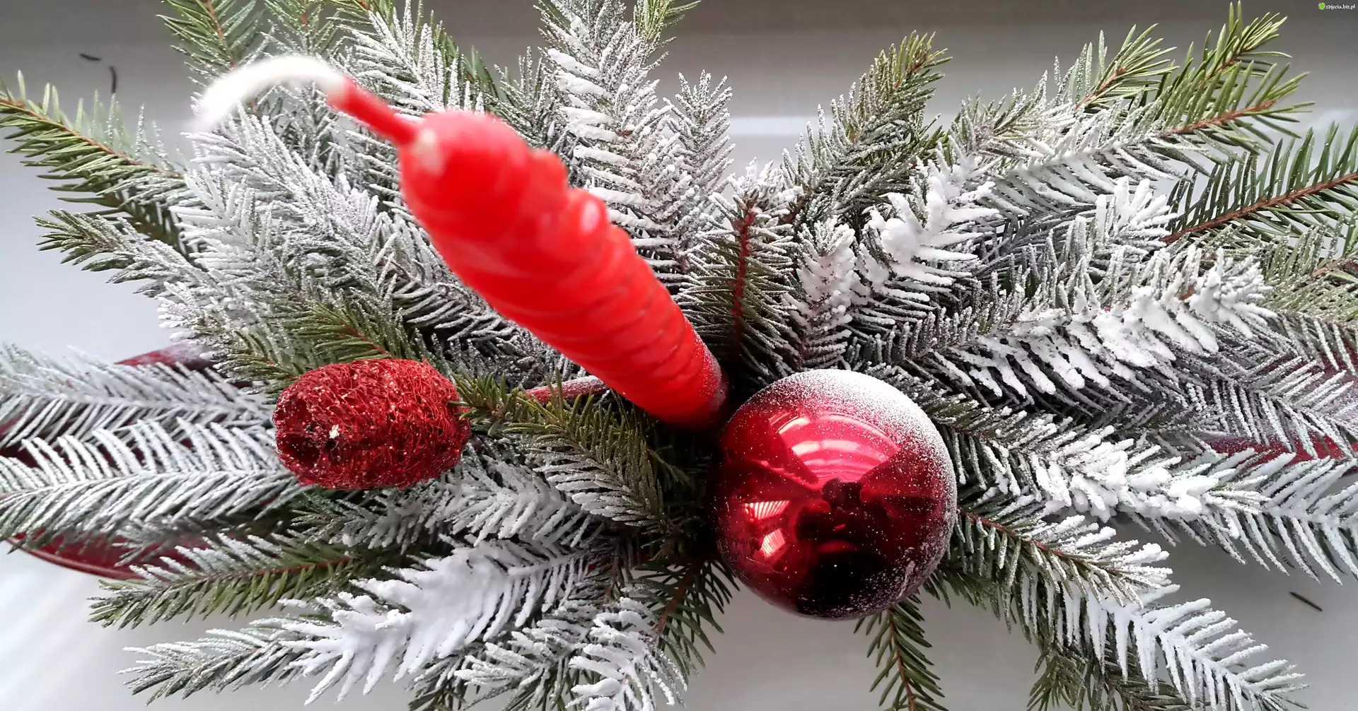 Zdjęcie, Stroik, Gałązki, Bombki, Świeca