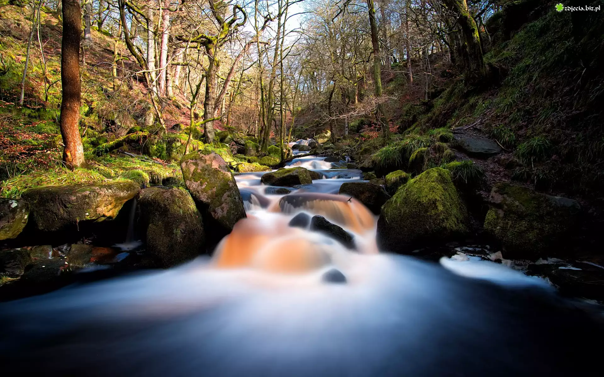 Zdjęcie Las, Drzewa, Rzeka, Strumień, Kamienie, Mech