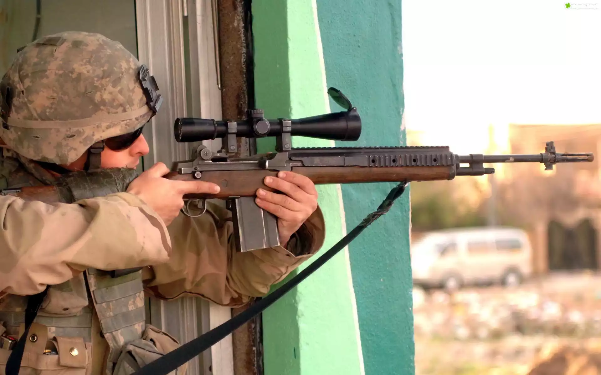 Zdjęcie Żołnierz, Broń, Strzały, Mur
