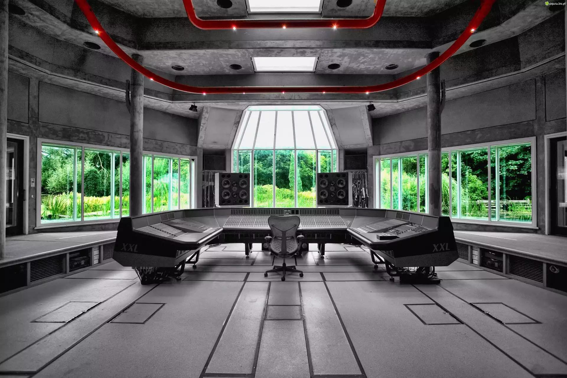 Zdjęcie Studio, Nagraniowe, Stół, Głośniki, Okna