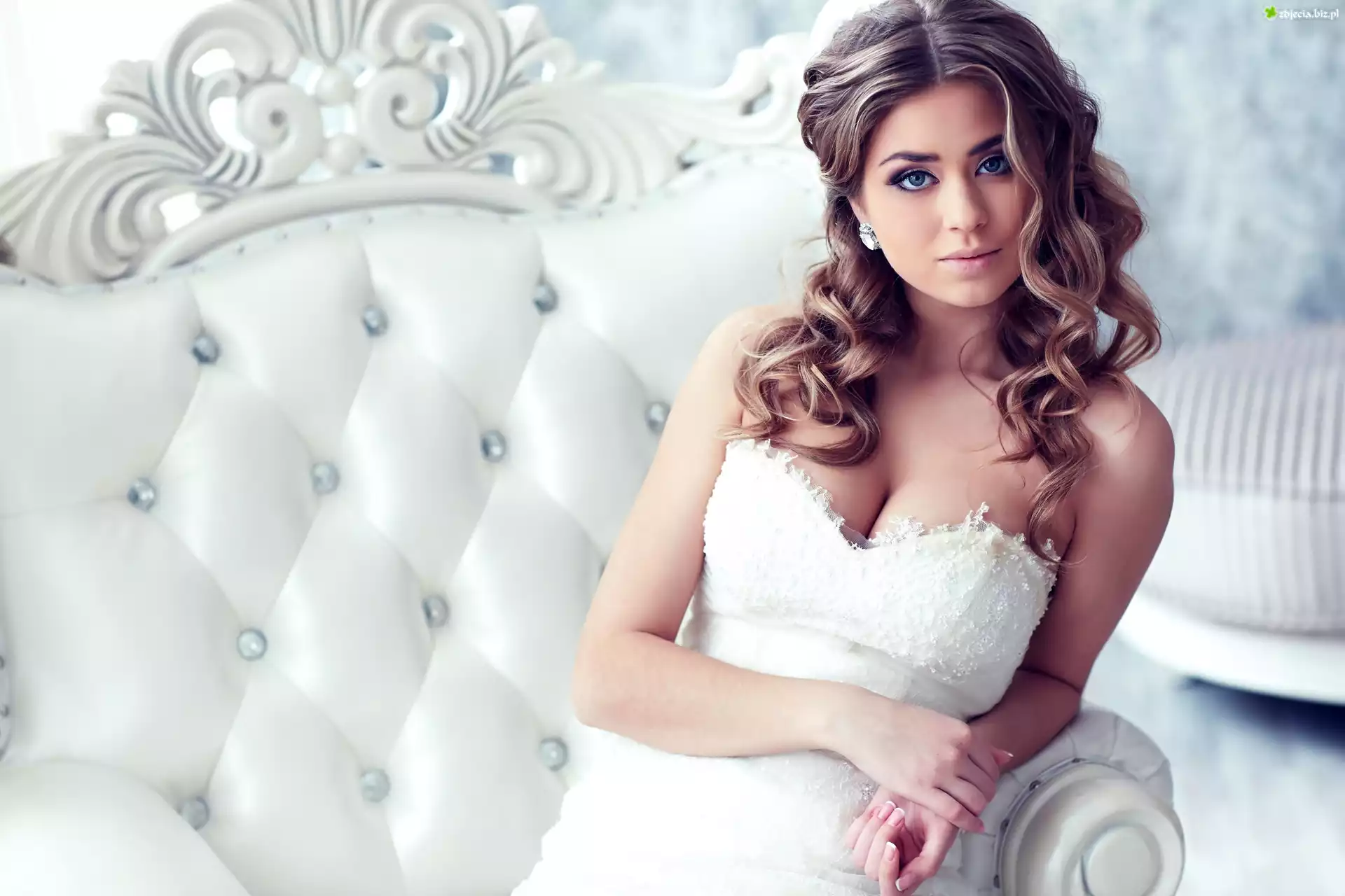 Zdjęcie, Kobieta, Suknia, Kanapa