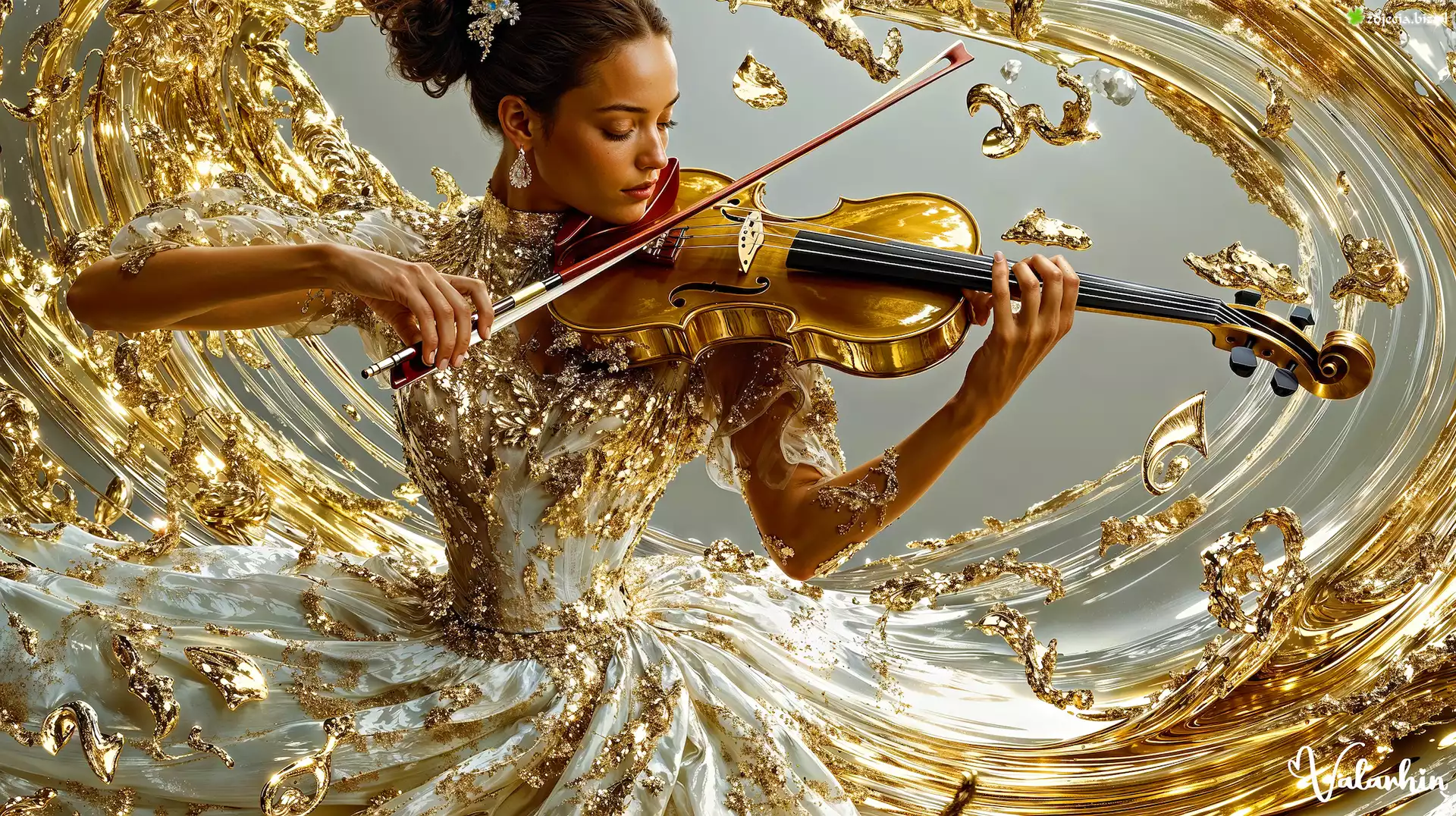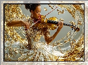 Zdjęcie, Kobieta, Biało-złota, Suknia, Skrzypce, Grafika AI