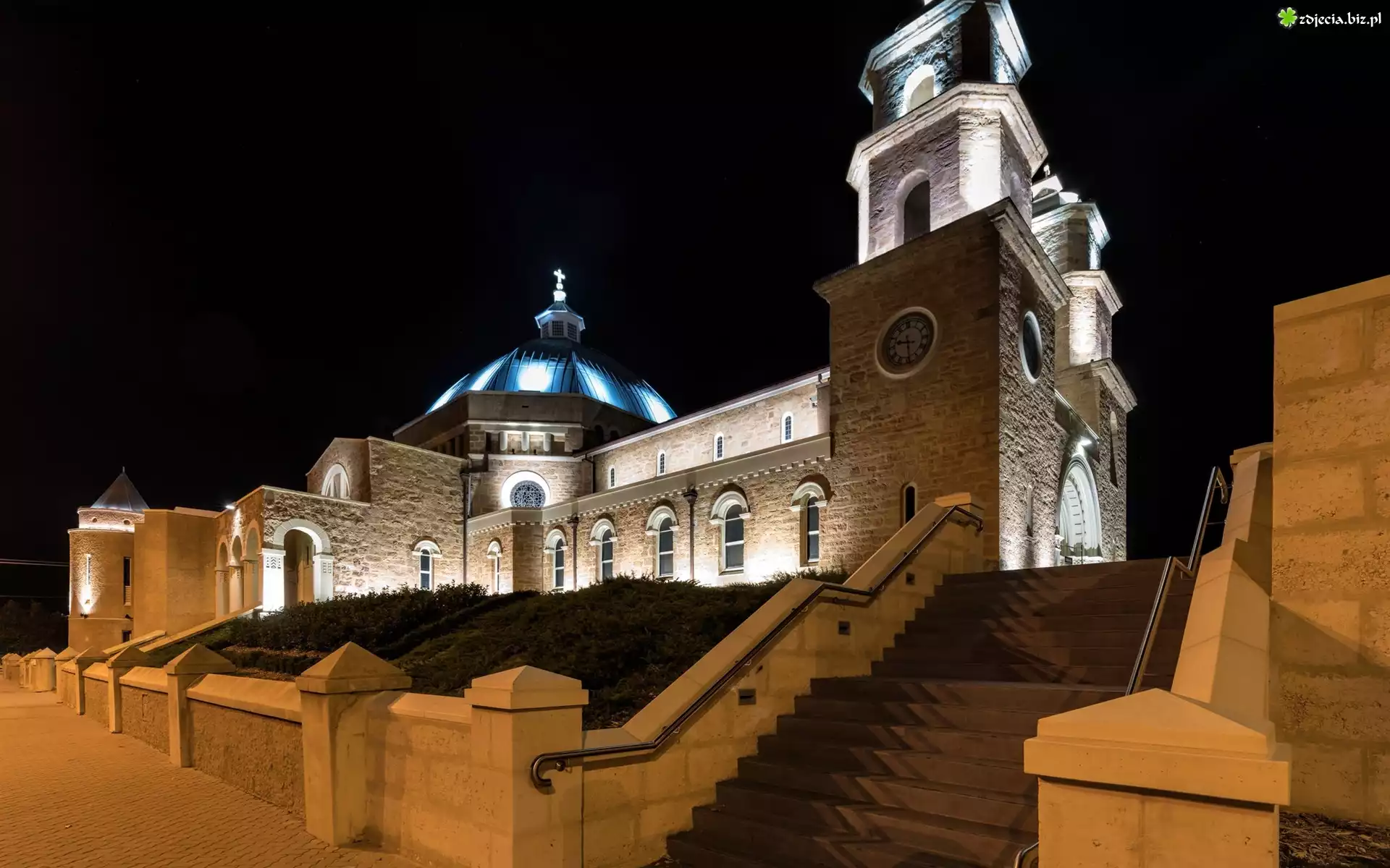 Zdjęcie, Katedra św Franciszka Ksawerego, Noc, Światła, Geraldton, Australia