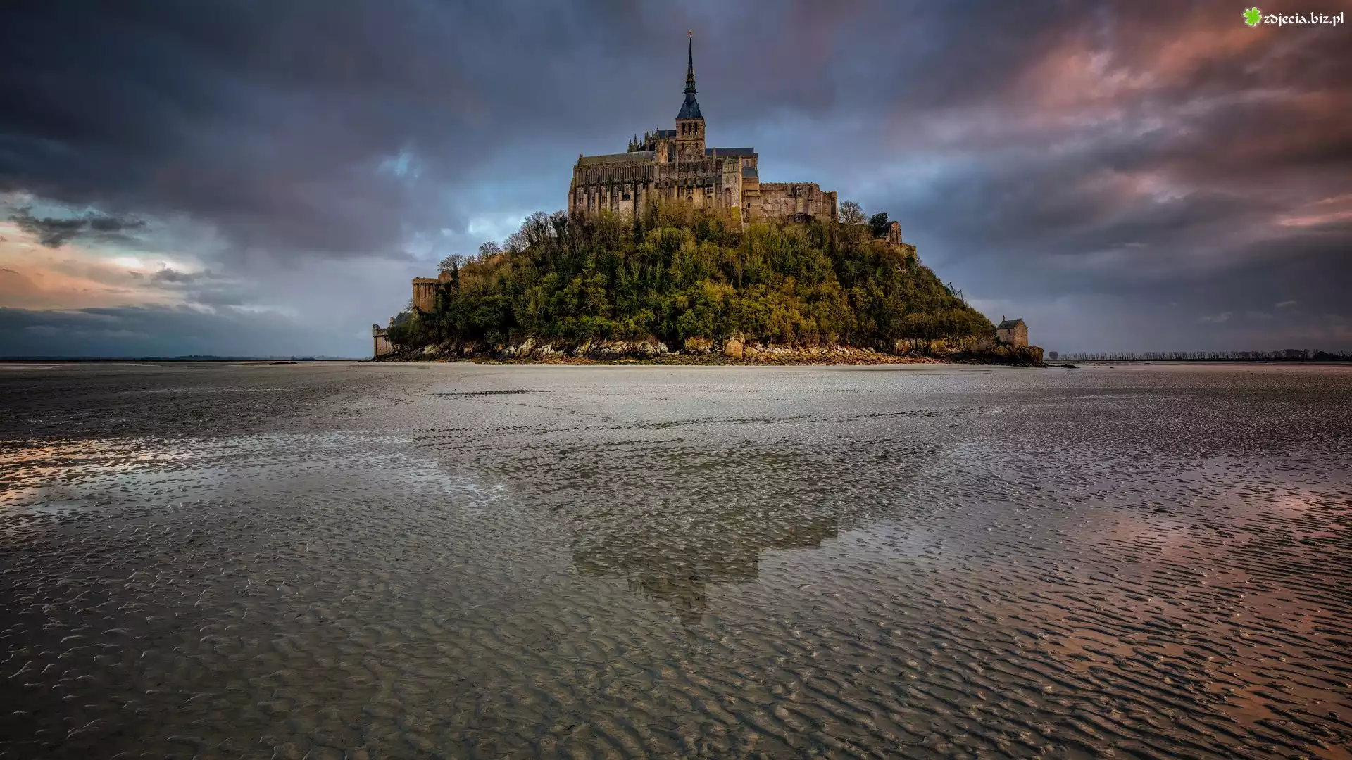 Zdjęcie Francja, Wyspa Mont Saint-Michel, Opactwo św Michała Archanioła, Chmury, Kościół