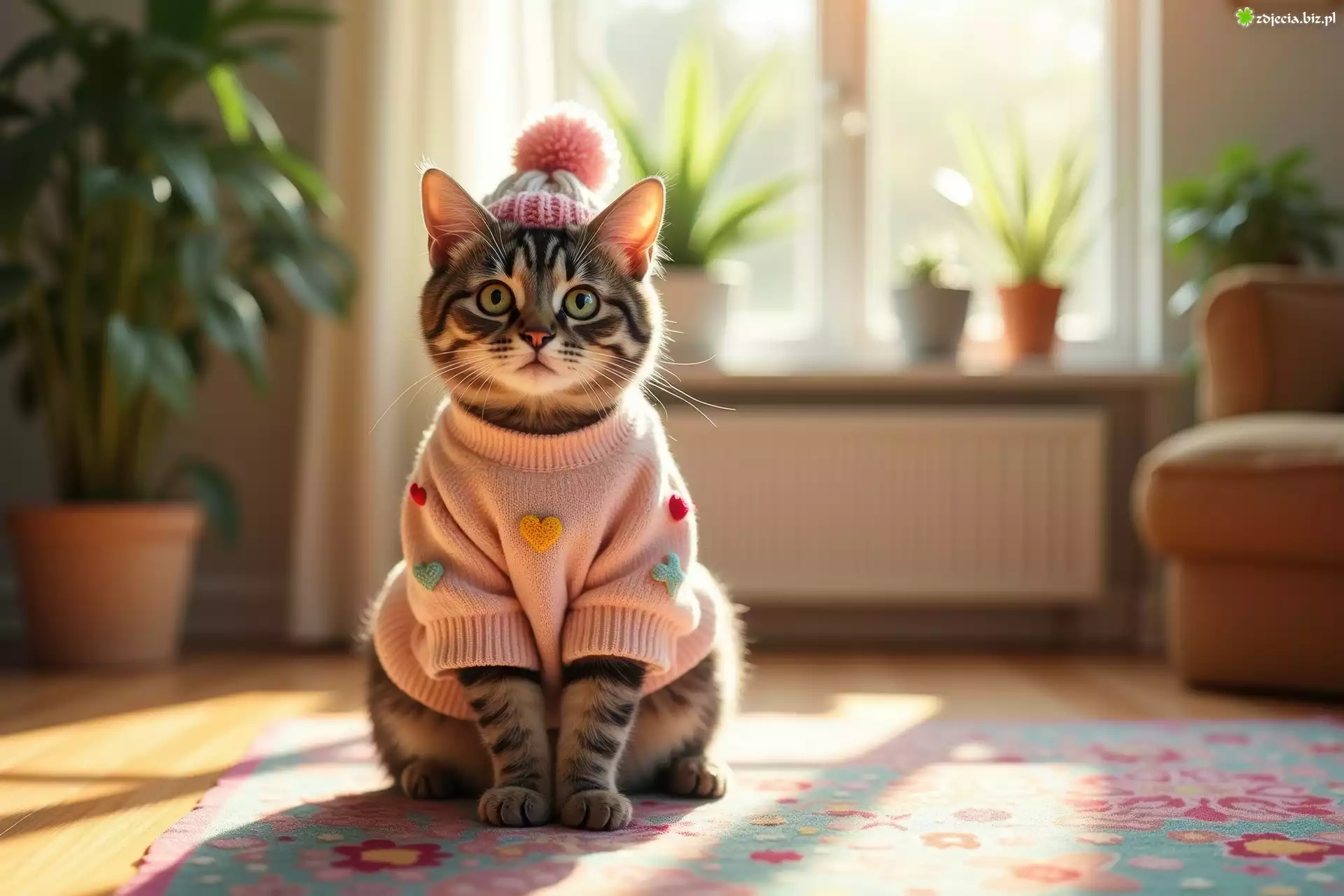 Zdjęcie Bury, Kot, Czapka, Sweter, Grafika AI