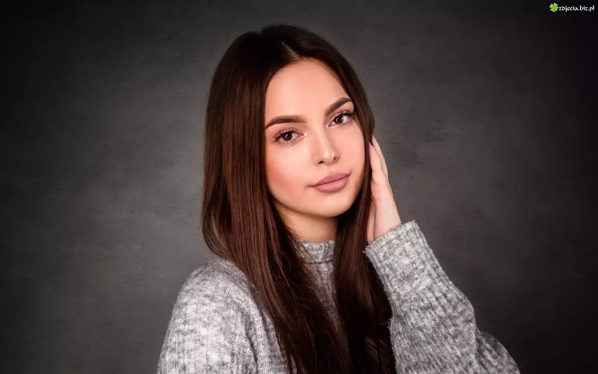 Zdjęcie, Kobieta, Szatynka, Szary, Sweter