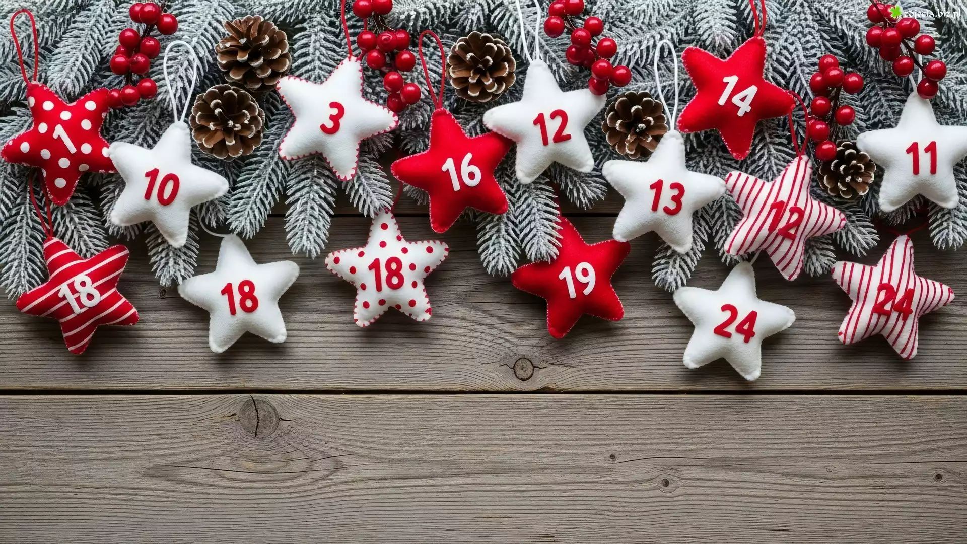 Zdjęcie Gwiazdki, Gałązki, Szyszki, Jagody, Deski, Kompozycja, Adwentowa, Świąteczne