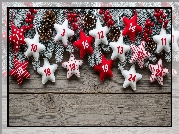 Zdjęcie, Gwiazdki, Gałązki, Szyszki, Jagody, Deski, Kompozycja, Adwentowa, Świąteczne
